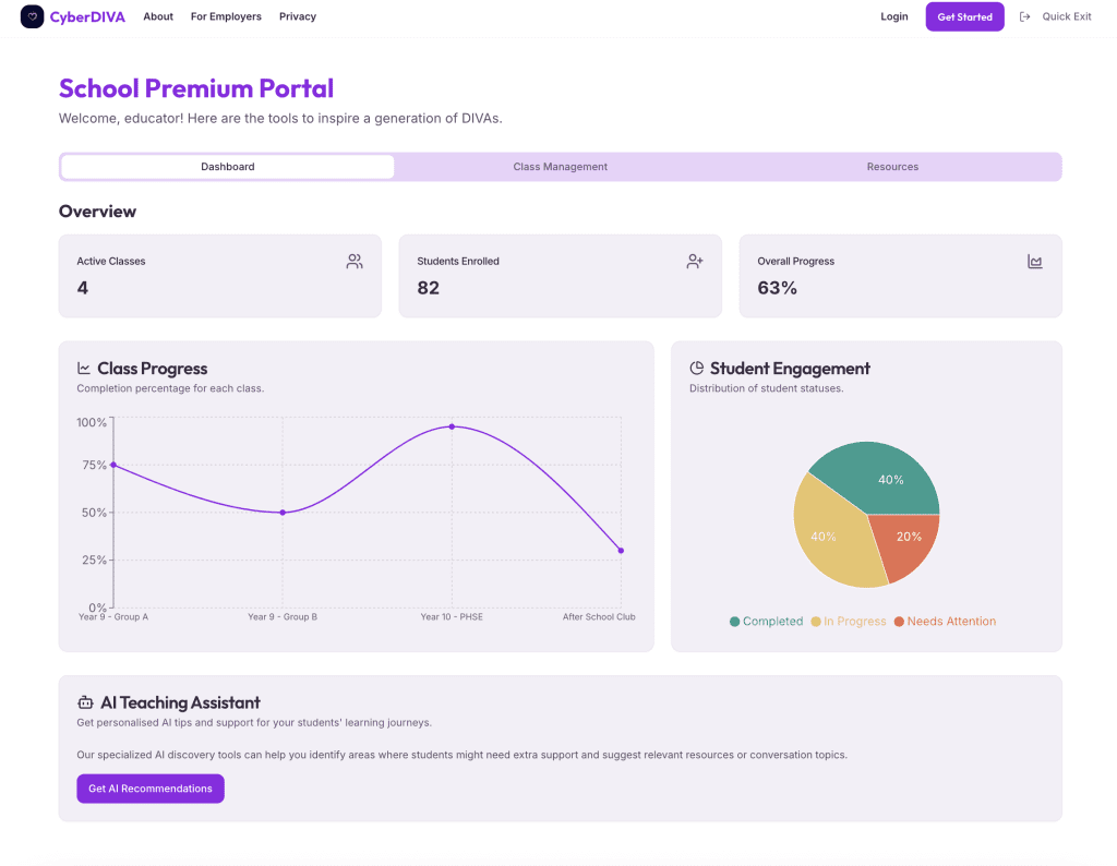 One of the most significant outcomes of the CyberDIVA project is an interactive educational platform developed by Forensic Pathways, purpose-built for use in schools and educational settings across the UK. This platform puts forensic-grade intelligence into the hands of teachers, safeguarding leads, and young people themselves — in an age-appropriate, engaging format.